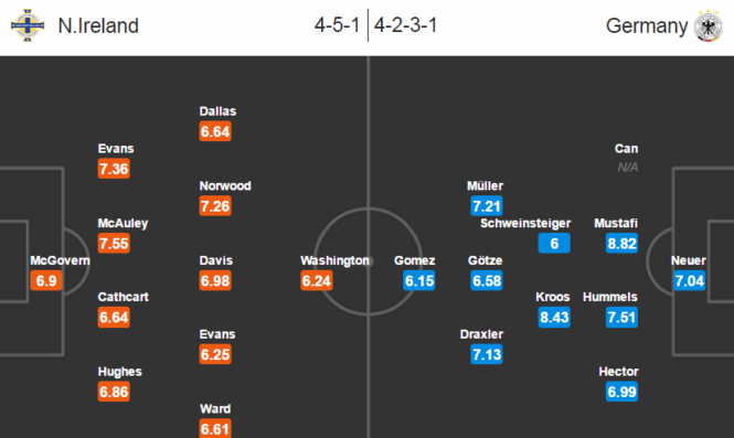 Německo na šampionátu zatím nijak příliš nezáří a minule měli i celkem štěstí, když remizovali s Polskem 0:0. Německo vyhrálo proti Severním Irům poslední čtyři měření sil a dalo jim přitom vždy alespoň tři branky. Další takovýto výsledek by tým Michaela O’Neila zdevastoval.