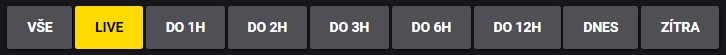 Pokud by vám nerozehrané zápasy vadily, pak přes filtr si můžete nastavit, abyste v sekci LIVE viděli pouze ty zápasy, které již probíhají.