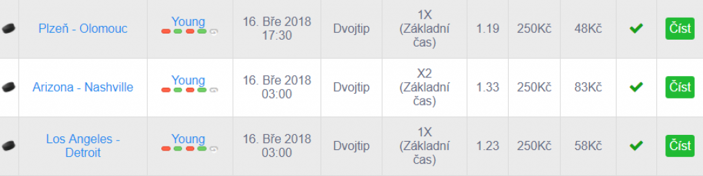 Rekord čítá celkem 17 OK tipů v řadě. Stojí za ním pravidelný tipař Young, který se specializuje na sázení nižších kurzů na fotbal ale i na hokej. Jeho oblíbenými sázkami jsou dvojtipy a sázky na výhru jednoho z týmů bez remízy.