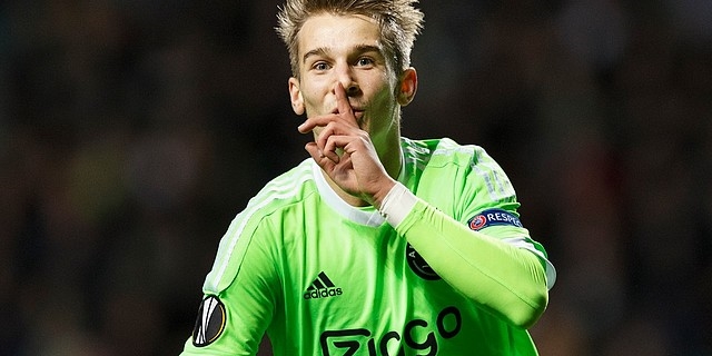 Václav Černý oslavuje svoji vůbec první vstřelenou branku za Ajax proti Celticu.