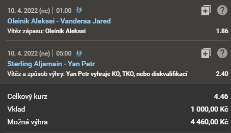 Makhmud „MACH“ Muradov ve spolupráci s Tipsportem vybral dva zápasy nadcházejícího UFC a o své tipy se podělil. K oběma zápasům se MACH následně i rozepsal ve svých analýzách. První zápas by měl začít hodinu po půlnoci z 9. na 10. dubna.