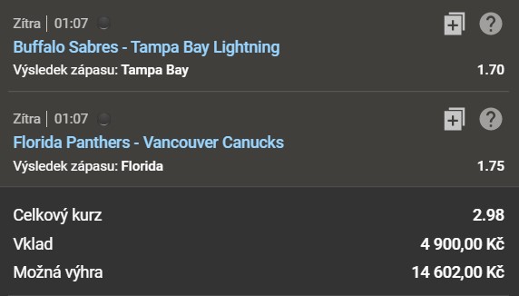 LuckyJanX zveřejnil svůj tiket v Tiket Aréně, který se skládá ze dvou nočních zápasů NHL, které se budou hrát v úterý na středu. Shodně obě utkání začínají v 1:07.