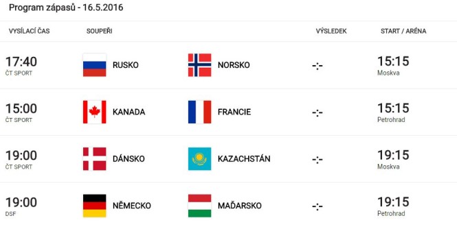 Pokud Rusko se Švédskem v následujících zápasech nezaváhají, klíčové utkání České republiky by se mohlo odehrát v úterý. Tento scénář však zatím necháme a uvidíme, s čím přijde soupeři. Jeden z nich – jmenovitě Rusko – se na ledě ukáže hned v pondělí, kdy odehraje zápas s Norskem.