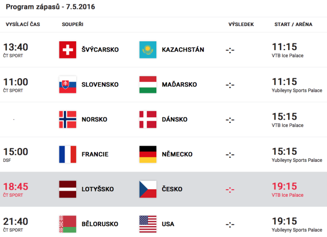 Po silně nepovedeném pátečním zápase proti Kanadě nastoupí výběr USA proti Bělorusku, které v úvodním zápase podlehlo pro změnu Finsku (6:2). Oba týmy se sice zatím moc nepředvedly, ale přesto se dá čekat, že USA bude mít nad Běloruskem velkou převahu.
