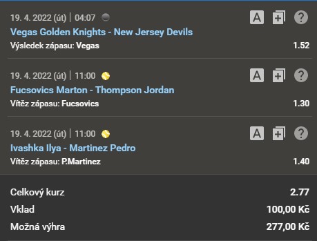 TIP: Golden Knights, kurz 1,52 (Tipsport)