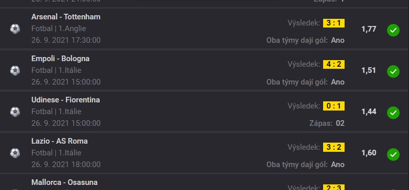 Tiket obsahuje 21 zápasů, pokud ho chcete vidět celý, níže je přiložen odkaz na daný výherní tiket.