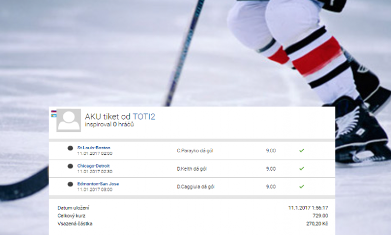 Doporučujeme hokejový tiket, kterým se inspirovalo již více jak 100 sázejících!V TIKET ARÉNĚ u Chance hledáme zajímavé a hodnotné tikety, který oslovil mnoho sázejících. Tyto tikety předkládáme ...
