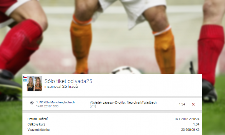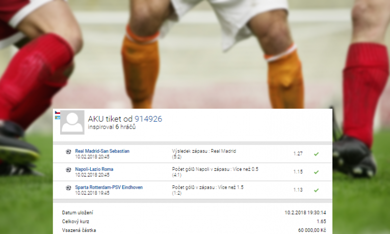 Vyplatí se vsadit 60.000,- Kč v celkovém kurzu 1,65? Sám pro sebe se na tuto otázku rozhodl odpovědět 10. února jeden z klientů sázkové kanceláře Tipsport, který obnos této výše vsadil na 3 fotbalové ...