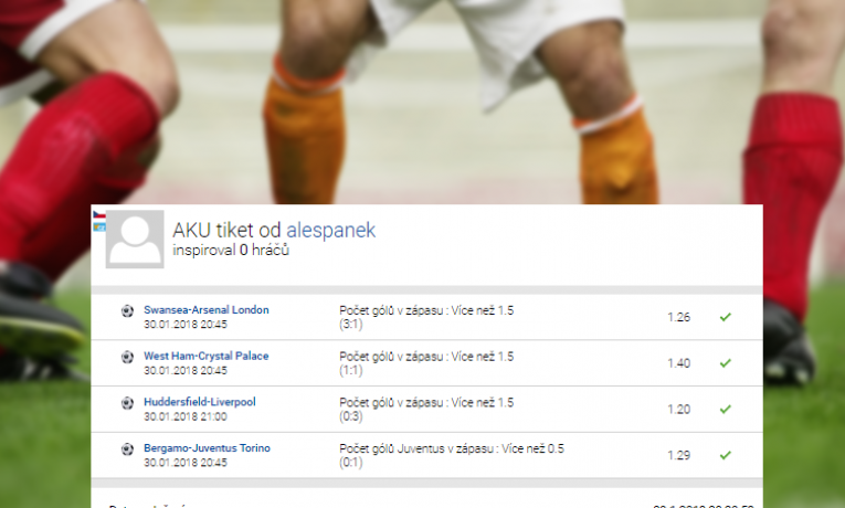 Dnes se společně podíváme na detailní rozbor tiketu podaného 30. ledna 2018 u sázkové kanceláře Tipsport s přesně desetitisícovým vkladem. Jeho obsah tvořily celkem 4 příležitosti, z nichž se všechny ...