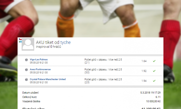 Analýza tiketu vám tentokrát poodhalí pozadí, na jehož základě sázkař s příznačnou přezdívkou vyherce podal za 30 tisíc korun níže přiložený lístek se 3 tipy na výhru domácích. Ty mu daly dohromady ...