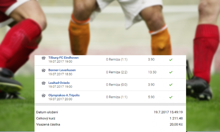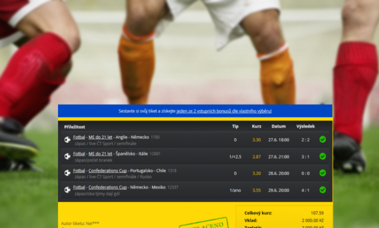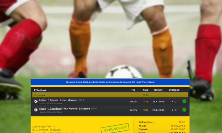 Rozbor tiketu: 4 góly mu měly vynést 53.000,- Kč. Vyšlo to?