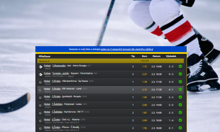 Doporučujeme fotbalový EXTRA tiket, kterým se inspirovalo již více jak 100 sázejících!V TIKET ARÉNĚ u Chance hledáme zajímavé a hodnotné tikety, který oslovil mnoho sázejících. Tyto tikety ...