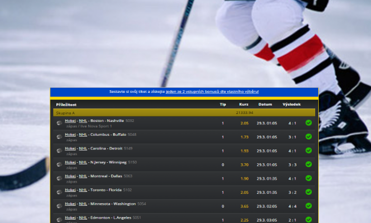 Tiket na sobotní zápasy NHL od Ladyextreme