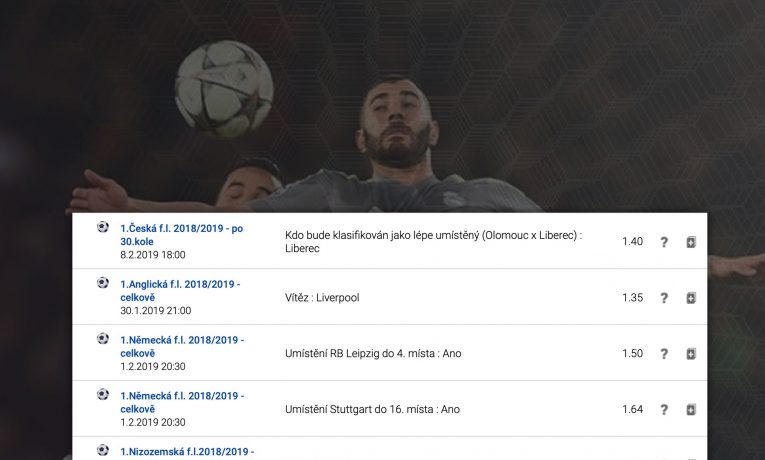 Fotbalovým tiketem se inspirovalo více jak 100 sázejících (kurz 18) – platnost tiketu 8.2.