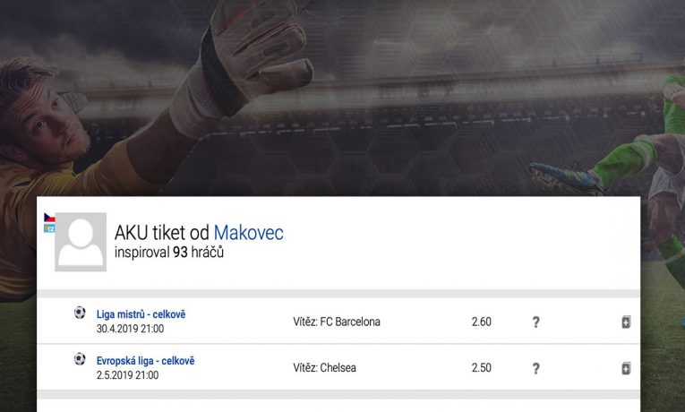 Tipař s nickem Makovec vsadil 25 tisíc Kč na tiket s kurzem 6.50. Téměř 100 sázejících se inspirovalo jeho tiketem. Přidáte se také, nebo vsazené peníze poputují sázkovce?V TIKET ARÉNĚ hledáme ...