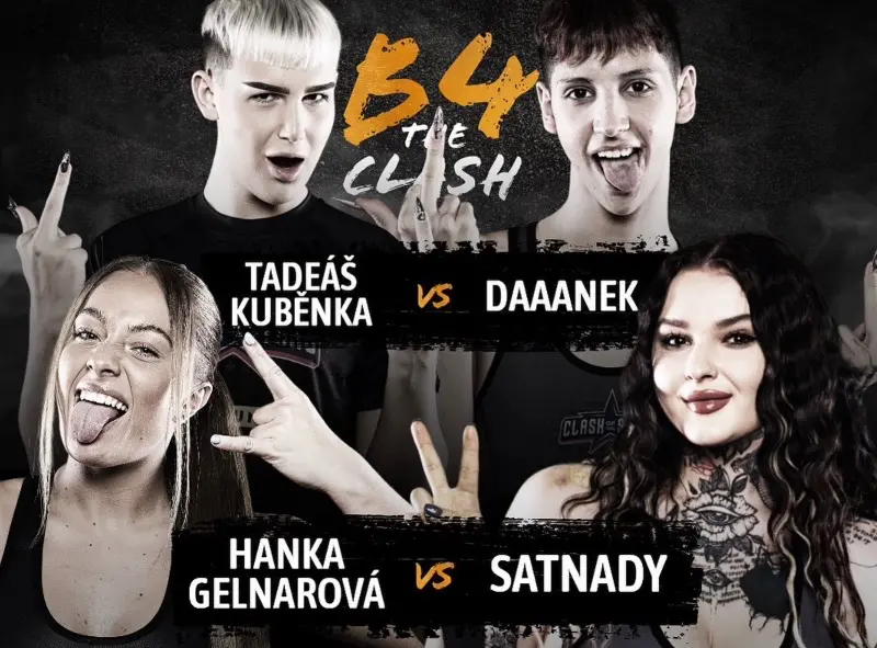 Klid a rozum přinesly na první tiskové konferenci do jinak vyhrocené atmosféry influencerky Hanka Gelnarová a Satnady. První jmenovaná už v Clash of the Stars zápas měla a velice rychle a ho také dokázala vyhrát. Satnady je naopak pod hlavičkou této organizace novým jménem. Nováčkem však rozhodně není v bojových sportech, ty podle jejich slov dělá od mala a základ má v postojářských disciplínách jako karate nebo kickbox.