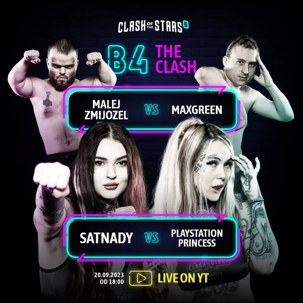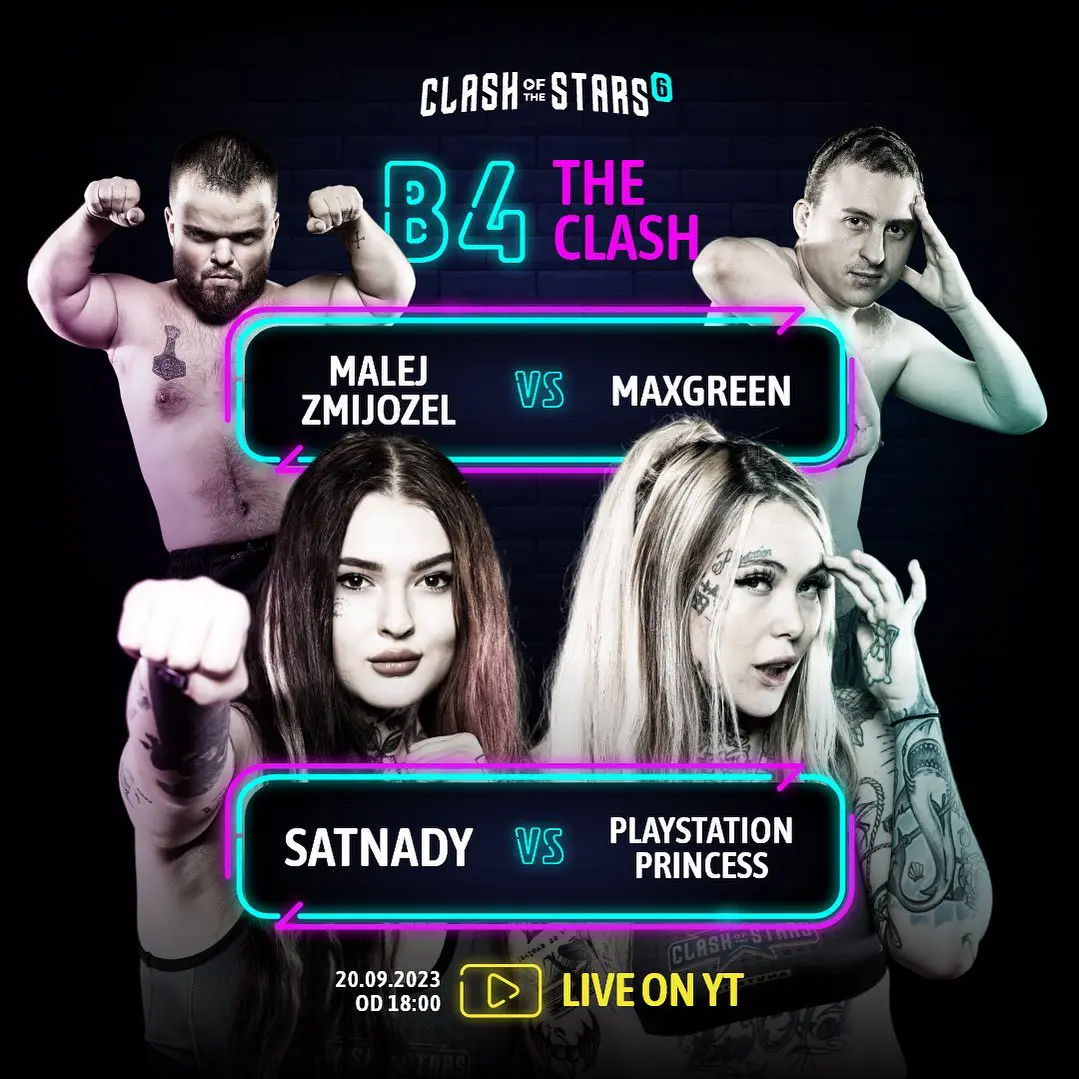 Organizaci Clash Of The Stars zná už v České republice téměř každý. Jedná se o pořádání zápasů mezi lidmi známými z prostředí internetu, hudby, a především sociálních sítí. Už 28. října 2023 nás čeká v pořadí šestý galavečer této bizarní organizace. Těšit se můžeme na dívčí zápasy, souboj raperů, kulturisty nebo souboj 3 vs 1 avšak v zajímavých pravidlech. Kurzy na Clash Of The Stars 6 už nyní vypsal sponzor celé organizace Fortuna. První sázky a tipy na tento turnaj najdete níže ve článku.