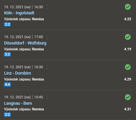 V rámci německé ligy se v neděli odehrálo sedm utkání, z nichž tři zápasy šly do prodloužení a právě dvě utkání, které vybral neznámý sázející byly po šedesáti minutách nerozhodné.