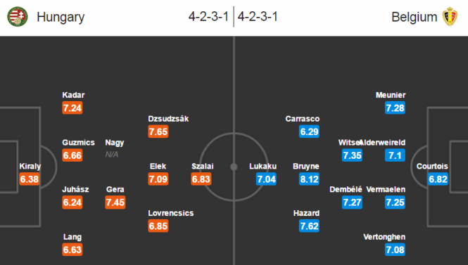 Maďarsko celou Evropu překvapilo tím, že vyhrálo Skupiny F a to před Portugalskem, Islandem a Rakouskem. Jsou jedním z pouze 4 zemí, které dali v každém mači alespoň jednu branku. V utkání s Belgií jsou ale outsiderem, i když Belgie také nehraje nijak světoborně, takže šance na postup by zde byla.