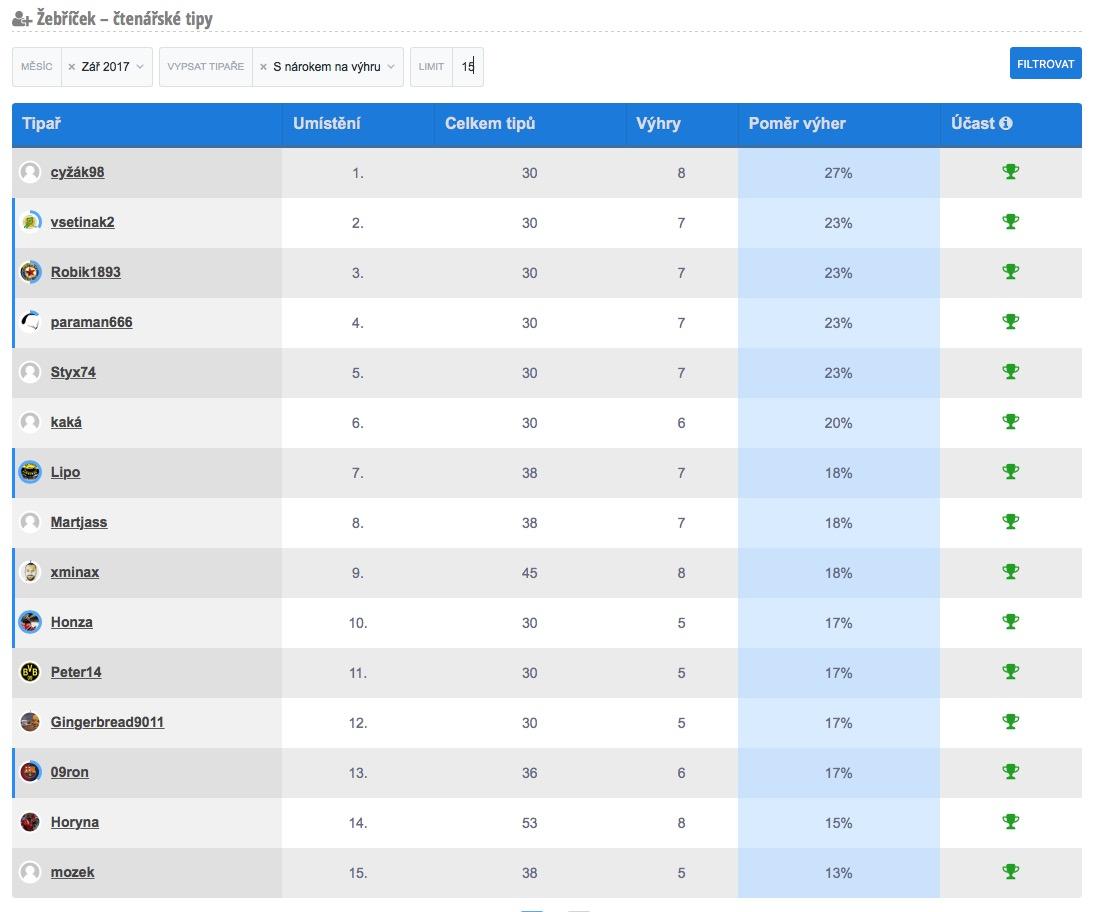 Ať chceme nebo ne, měsíční soutěž bude vždy záviset i na momentálním štěstí. Proto jsme se rozhodli odměňovat šikovné tipaře také na dlouhodobější bázi, tedy v rámci nějaké formy čtvrtletní či roční soutěže, případně milníků, které by se stahovali k jednotlivým tipařům. Na formě soutěže zatím pracujeme. Doufáme, že se vám bude líbit. Tuto soutěž chceme spustit někdy na začátku / v průběhu příštího roku. Snad vám udělá radost a ještě více vás motivuje k tvrdé práci, které si u vás velmi vážíme.