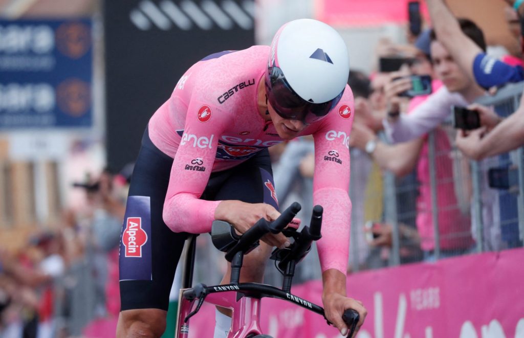 Pro vedoucího závodníka celkového pořadí je připravený růžový trikot (maglia rosa).
