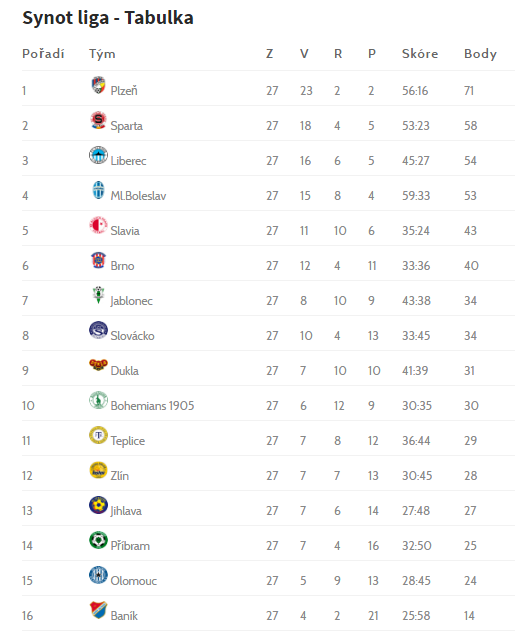 Další týden utekl jako voda a my tu pro vás máme další informační servis, tentokrát již pro 28. kolo Synot ligy. Ačkoliv máme 3 kola před koncem české nejvyšší fotbalové soutěže jasno o mistrovi i prvním sestupujícím, čeká nás 8 strhujících utkání, ve kterých rozhodně bude o co bojovat! Udrží Sparta “alespoň” 2. místo, nebo v přímém souboji ještě vzkřísí naději Liberec? Napraví Mladá Boleslav své zaváhání z minulého kola a vyšvihne se opět před Slovan? A co Sigma, dokáže ještě zabojovat o udržení? Odpovědi i na tyto otázky se budou po víkendu 6. – 8. května jevit zase o něco jasněji!