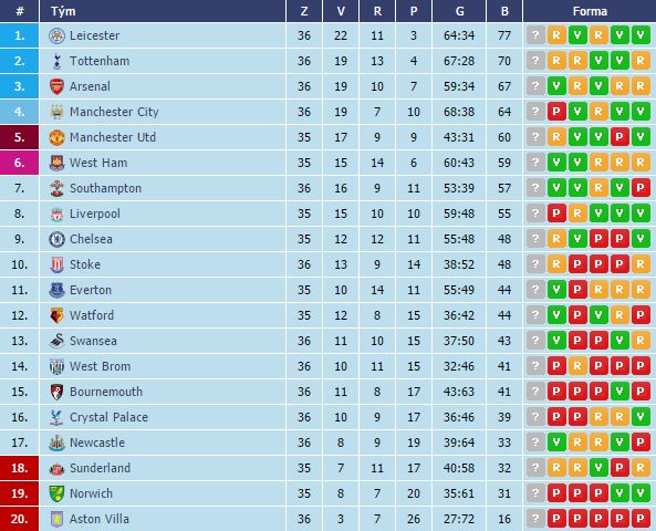 Jelikož Spurs na Stamford Bridge nedokázali porazit Chelsea, Leicester má již titul jistý. Ještě předtím, než ho Leicester zvedne nad hlavu, bude chtít před domácími fanoušky získat všechny body. Lišky v této sezóně na domácím hřišti získaly vůbec nejvíc bodů (39) z celé Premier League a tak se dá očekávat, že zvítězí i tento víkend.