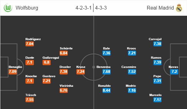 | Wolfsburgu již v této sezoně nepomůže Naldo, jedna z hlavních hvězd, bez které jsou šance Němců na úspěch s Realem prakticky mizivé. Pro tuto sezonu navíc dohrál i Sebastian Jung. Připraveni budou na středeční utkání naopak Diego Benaglio, Maximilian Arnold a Carlos Ascues. Otazník visí nad startem Base Dosta. Naopak v základní jedenáctce by se měl představit Luis Gustavo. | Svěřence Zinedina Zidana může těšit sobotní vítězství v El Clásicu nad Barcelonou. Do sebevědomí hráčů se to jistě promítne. Nastoupit může Sergio Ramos, který byl v duelu s Barcelonou vyloučen, ovšem jeho trest se na utkání LM nevztahuje. Raphael Varane je jediným hráčem, na kterým visí před utkáním ve Wolfsburgu otazník. |