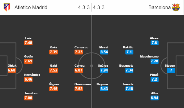 Barcelona poslední dobou nezvykle často inkasuje, když Katalánci udrželi čisté konto pouze ve 3 z 11 posledních zápasů. Oproti tomu Atlético je doma velice produktivní a neskórovalo zde za celou sezonu ve všech soutěžích dohromady pouze ve třech zápasech. Navíc svěřenci Diega Simeoneho vstřelili v posledních 4 domácích utkáních 11 gólů, ovšem jejich vzájemná bilance s Barcelonou není vůbec dobrá.
