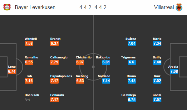 V nejlepší formě však není ani domácí Leverkusen, který však o víkendu výhrou 1:0 nad Hamburgem přerušil 4 zápasovou sérii bez výhry, a zároveň po 7 zápasech dokázal udržet čisté konto. Šance na postup však z pohledu Leverkusenu nejsou kvůli nevstřelené brance venku příliš valné. Porazit by však Němci Villarreal mohli.