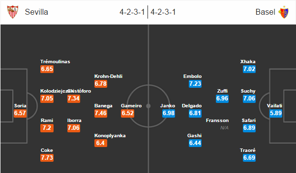 | Seville v odvetě nepomůže Steven N’Zozi, který si ve čtvrtek večer odpyká disciplinární trest za vyloučení v úvodním duelu. Nastoupit naopak může o víkendu v lize vyloučený Banega. Grzegor Krychowiak od konce ledna laboroval se zraněním kolene, a ačkoliv je jeho stav již téměř dobrý, jeho nástup proti Basileji je nepravděpodobný. Na pravém křídle by se místo zraněného Vitola mohl představit Yevhen Konoplyanka.