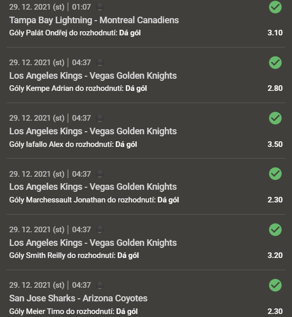 Neznámý sázející vsadil 28. prosince pár minut po 20. hodině na střelce NHL. Po pauze se kvůli covidu, soutěž kompletně přerušila, ale se 29. prosince obnovila. Ač se v noci 29. prosince hrály jen tři zápasy, sázejícímu to nebránilo vybrat celkem osm střelců z těchto utkání a vsadit to na AKU tiket. Celkový kurz tiketu byl 4 114,18 se vkladem 5 Kč. Nakonec se tak neznámý sázející radoval z výhry 20 570,90 Kč.
