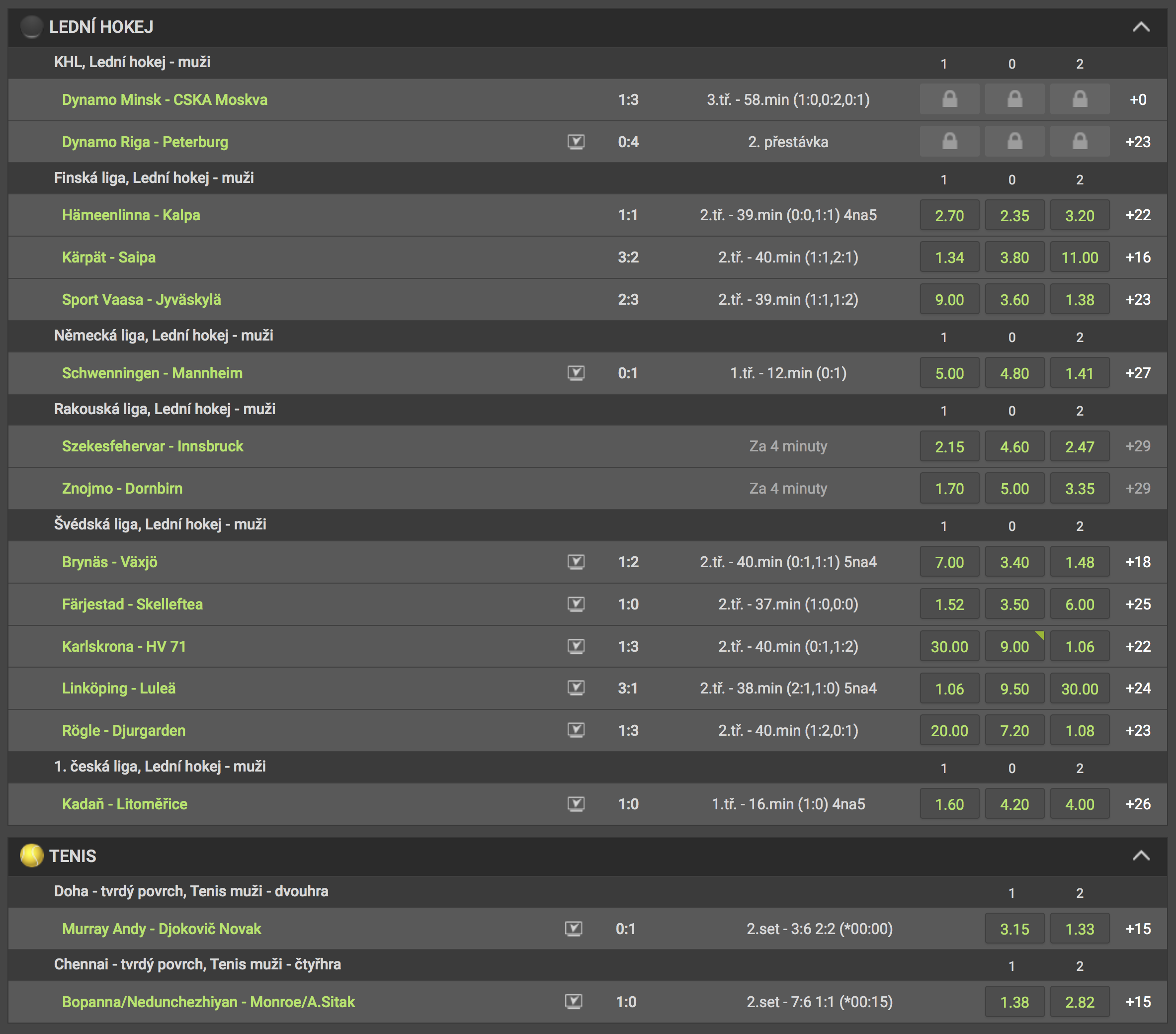 Abyste na Chanci mohli sledovat všechny live streamy (nejen na hokej, ale i na fotbal, tenis, basketbal, Formule 1 atd.), stačí dokončit registraci u této sázkové kanceláře a následně si vsadit za bonusové peníze, které od Chance dostanete jako poděkování.