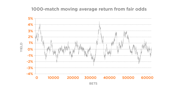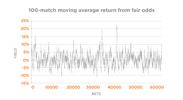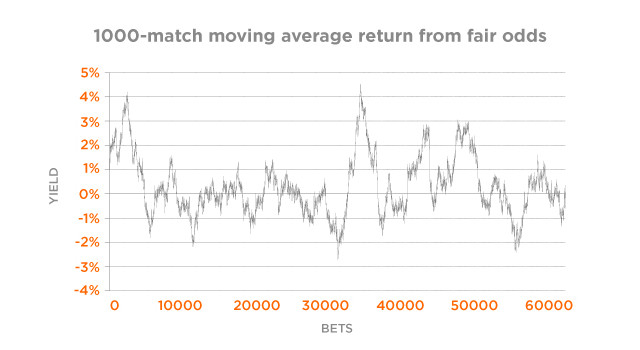 Toho můžeme docílit třeba tím, že dáme dohromady časové série hypotetických sázkových výnosů z reálných kurzů. Díky tomu zjistíme, jak se liší v různých časových obdobích. Sázkové kurzy přitom představují pouze odhadovanou návratnost pro naše očekávání (očekávanou hodnotu).