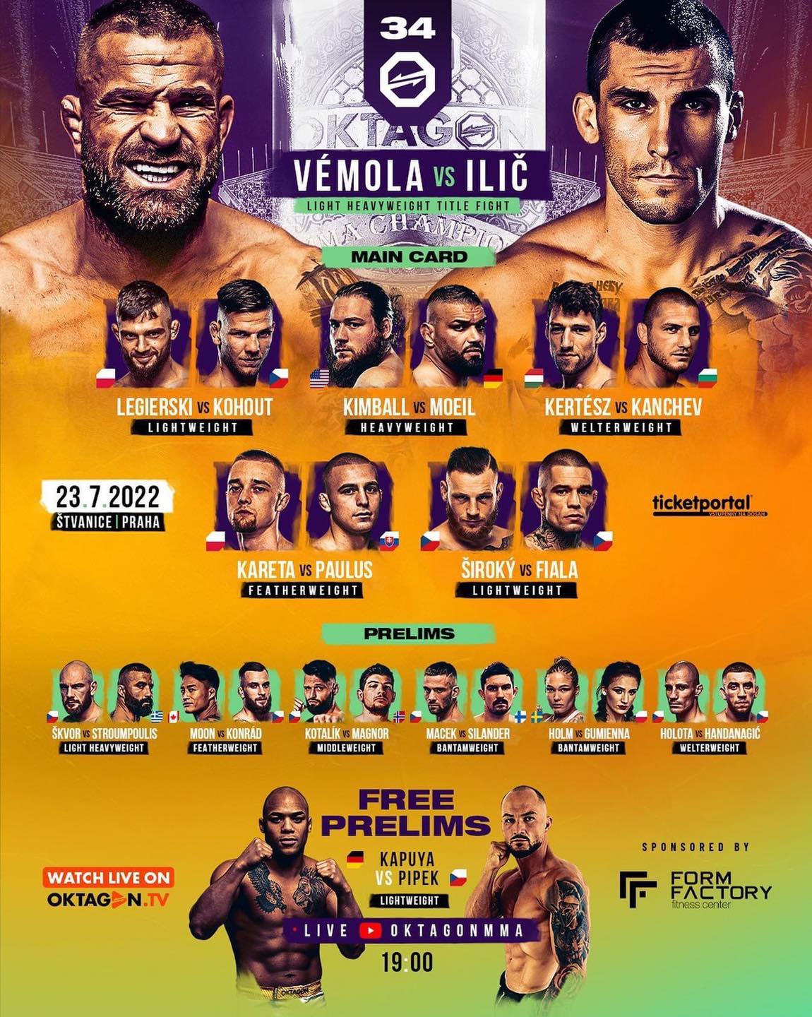 Karlos Vémola musí pro zisk pásu na který si už pěknou dobu brousí zuby porazit Aleksandara Iliće. Tento srbský bojovník s přezdívkou „Joker“ není rozhodně lehký soupeř. Na svém kontě má 13 výher a jen 4 porážky. O jeho kvalitě také svědčí předchozí působení v jedné z nejlepších MMA organizací na světě – polské KSW. Ilić je typický striker, tedy postojář, který nejraději rozdává tvrdé údery a vyhovuje mu, když se zápas nepřesouvá na zem. Ze 13 výher ukončil Joker hned 9 zápasů KO nebo TKO a naprostá většina Ilićových zápasů končí před limitem. Naposledy v dubnu poznal Ilićovu sílu Adrian Dudek, který nepřežil ani celé první kolo.