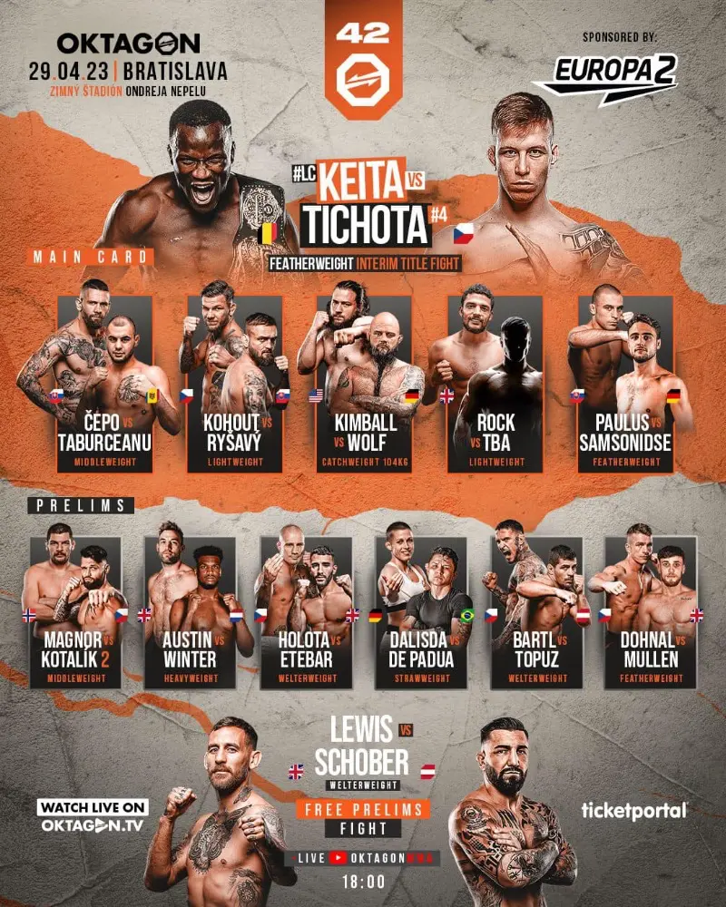 Veškeré zápasy galavečeru OKTAGON 42 můžete zdarma sledovat na TV Tipsport. Jedinou podmínkou je registrace a vsazení alespoň symbolické částky v nedávné době.