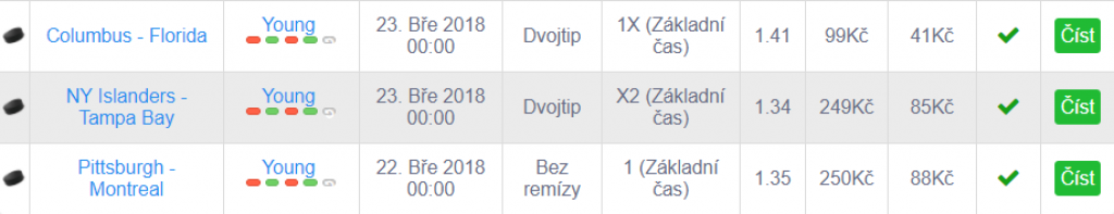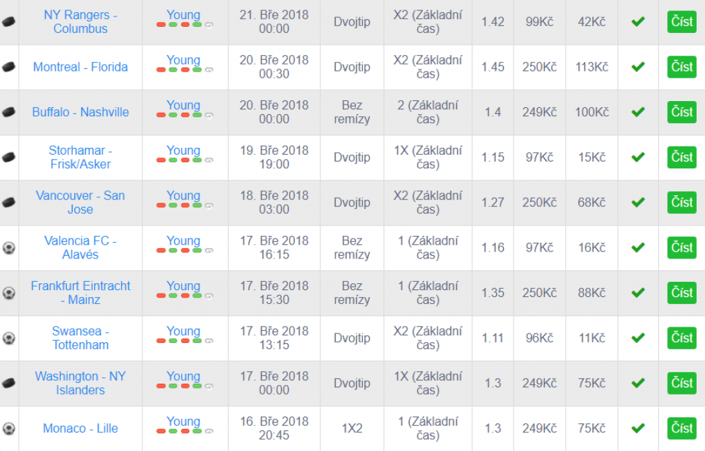 Rekord čítá celkem 17 OK tipů v řadě. Stojí za ním pravidelný tipař Young, který se specializuje na sázení nižších kurzů na fotbal ale i na hokej. Jeho oblíbenými sázkami jsou dvojtipy a sázky na výhru jednoho z týmů bez remízy.
