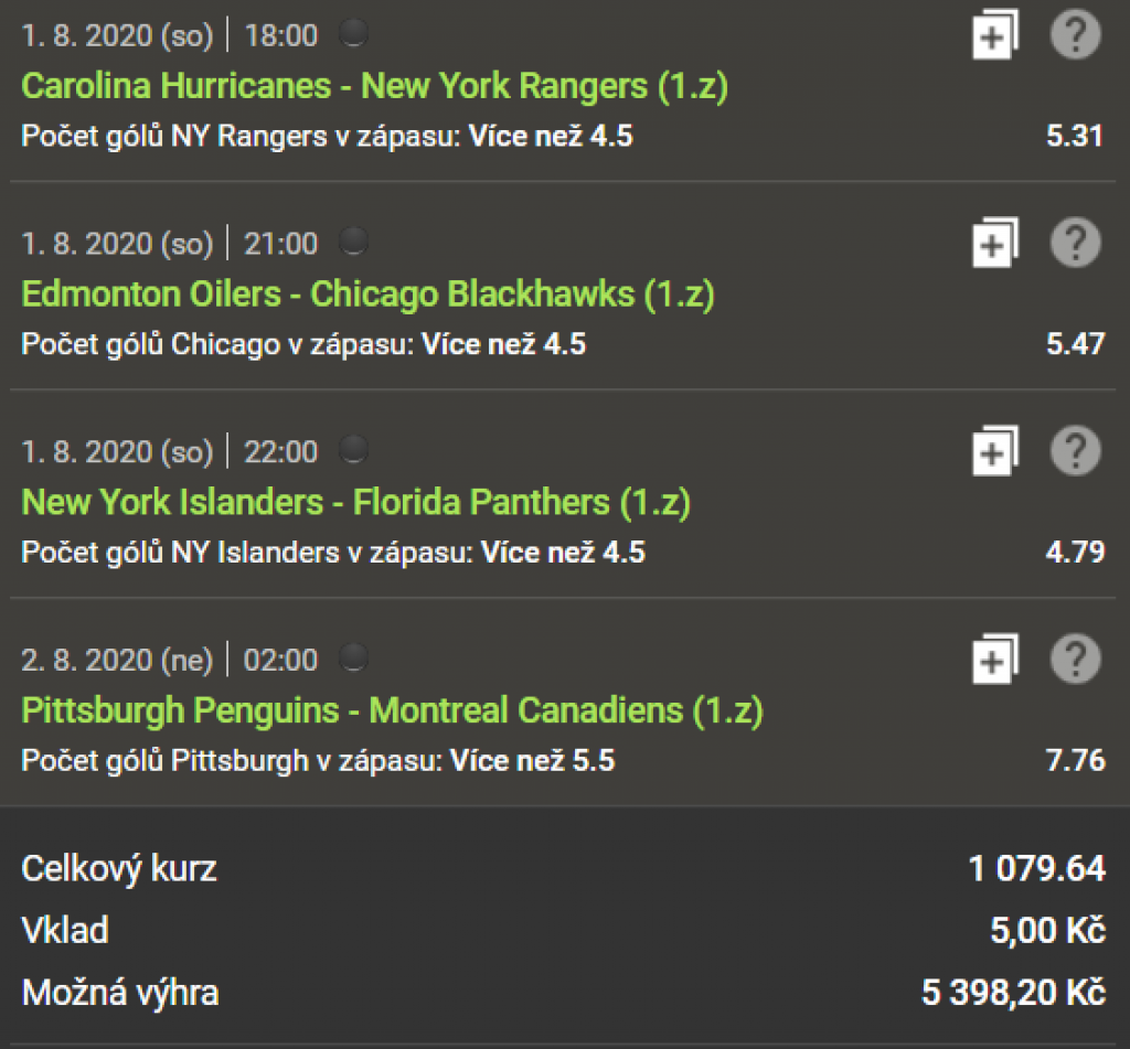 V dnešním díle naší sázkové loterie vás chceme seznámit s fotbalovým tiketem, který obsahuje celkem 4 sázkové příležitosti s celkovým kurzem 1079.64. To znamená, že za 5 vsazených korun můžete vyhrát přes 5 tisíc korun. Tiket byl inspirován tiketem hráče kisssa1, jenom byl z důvodu aktuálnosti upraven (byla z něj odstraněna jedna sázka).