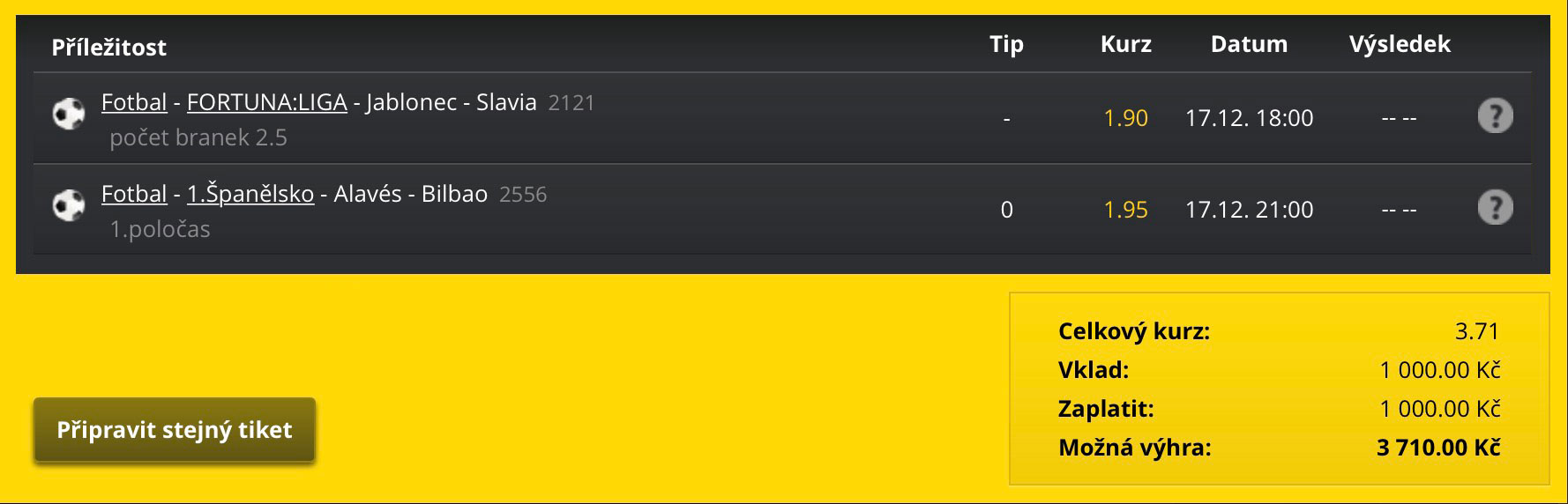 Tyto předpovědi kombinujeme a vsadíme krátký tiket za 1000 Kč. Přidáte se také, nebo vsazené peníze poputují sázkovce?
