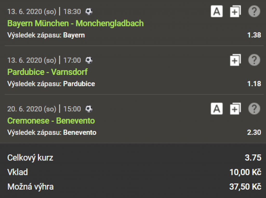 | Bayern Mnichov | 9 | Bayern Mnichov – B. Monchengladbach | 1,36 – 5,43 – 7,41 |