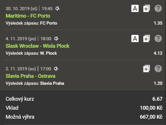| Slavia Praha | 6 | Slavia Praha – Ostrava | 1,18 – 5,95 – 13,08 |