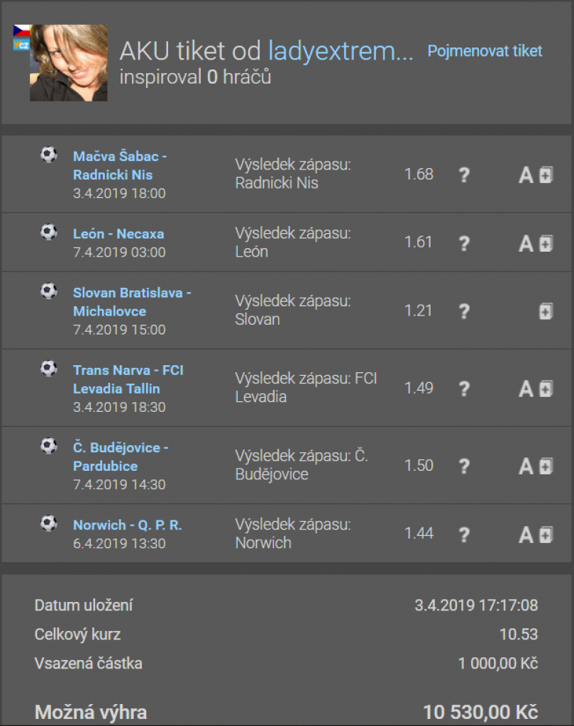 | Norwich – QPR | 7 | Norwich – QPR | 1,44 – 4,55 – 6,74 |