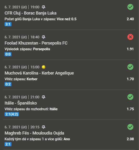 Jelikož je tiket dlouhý, screenshot obsahuje jen výběr pěti tipů. Pokud se chcete podívat na celý tiket, odkaz je na celý tiket níže.