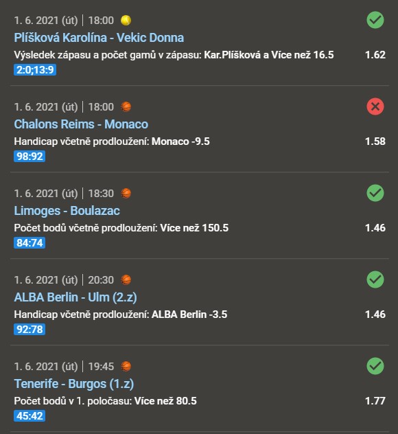 Sázející u Tipsportu či Chance sestavil 1. června v odpoledních hodinách tiket, který se skládal pouze ze zápasů, které se ten samý den hrály. Na svůj tiket vybral zápasy z fotbalu, hokeje, tenisu, volejbalu, stolnímu tenisu a basketbalu, což bylo nakonec sázejícímu osudné.