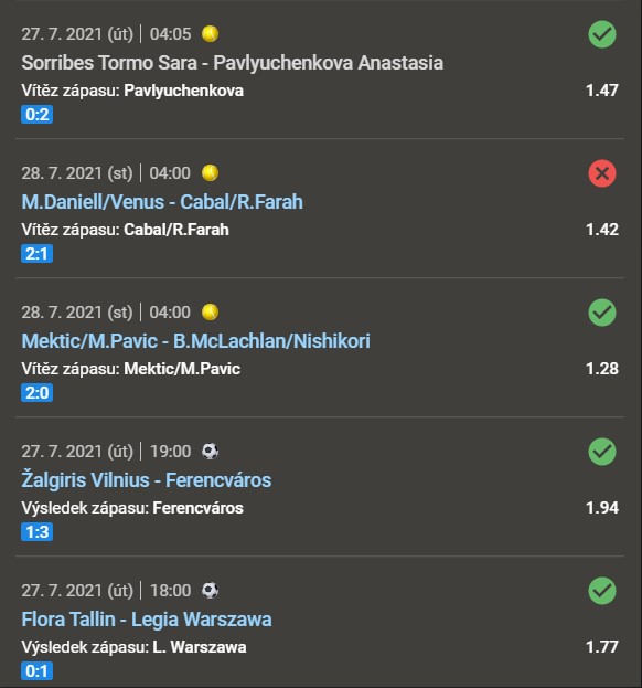 Jelikož je tiket dlouhý, screenshot obsahuje jen výběr pěti tipů. Pokud se chcete podívat na celý tiket, odkaz je na celý tiket níže.