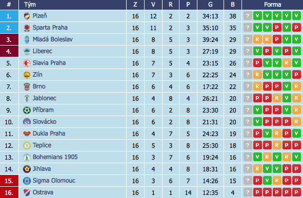 Pozn.: Kluby jsou seřazeny podle aktuální tabulky Synot ligy po podzimní části.