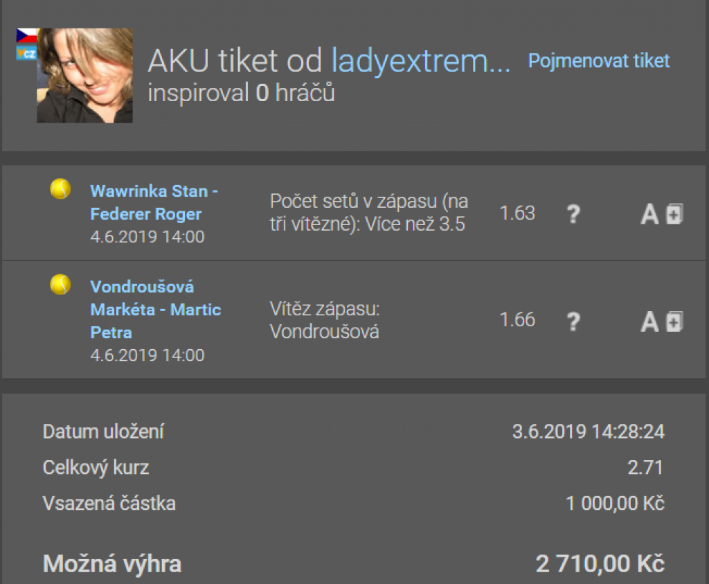 Jeden z nejprestižnějších tenisových turnajů je v plném proudu, proto jsme se rozhodli přinést vám několik tenisových speciálů. A začneme hezky zostra, tipem na singl mužů a singl žen. Oslavte French Open také nějakým tipem!