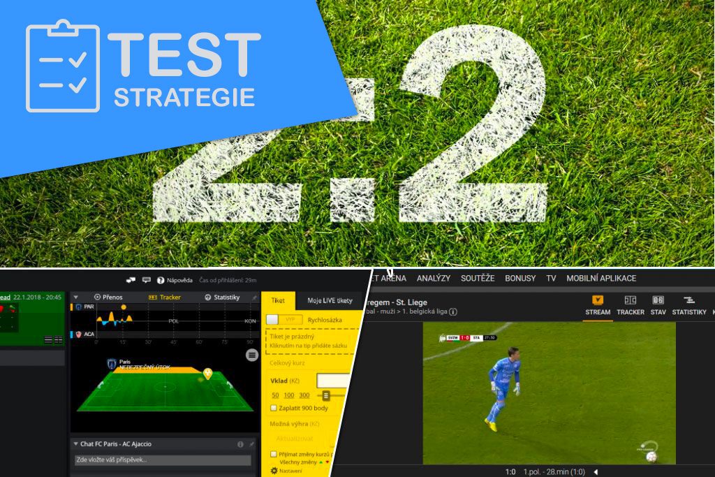 Jelikož předchozí zkušenosti mě naučily, že většina sázkových strategií funguje pouze na papíru, nikoliv v praxi, pro svůj test jsem si zvolila jen malé vklady. Před zápasem, na sázkovou příležitost 12 (nebude remíza) jsem sázela 50 korun. Během zápasu, po vstřelení gólu, jsem si jako sázku na remízu vyčlenila 15 korun. Tuto sázku jsem ovšem velmi rychle začala měnit podle skutečné výšky nabízených kurzů, neboť kurzy se liší a v tomto případě i jen pár desetin dělá velké rozdíly.