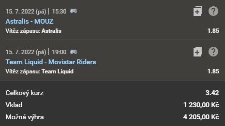 Druhou čtvrtfinálovou dvojicí je Team Liquid, který se utká se španělským Movistar Riders. I zde jsou kurzy velice vyrovnané, ale mírným favoritem je Team Liquid.