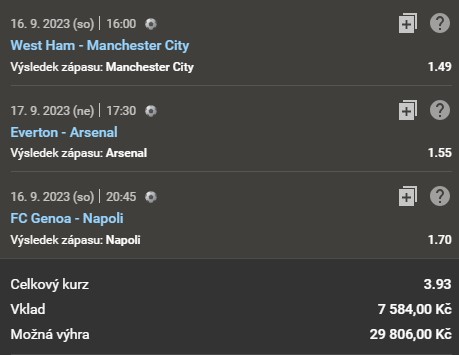 Slovenský sázející s nickem Flexxxo vsadil již ve středu 6. září na tři fotbalové zápasy, které se budou hrát o tomto víkendu.